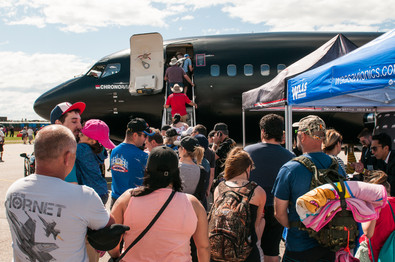 Depuis 2015, Chrono Aviation parcourt les spectacles aériens un peu partout en province afin de faire connaitre leurs activités, mais également pour partager avec les gens de partout leur passion pour l'aviation en permettant au maximum de personnes possible de voir et toucher les avions, de questionner les pilotes et membres d'équipage et pourquoi pas aussi de voler dans leurs appareils lorsque le cadre d'opération du spectacle aérien le permet.